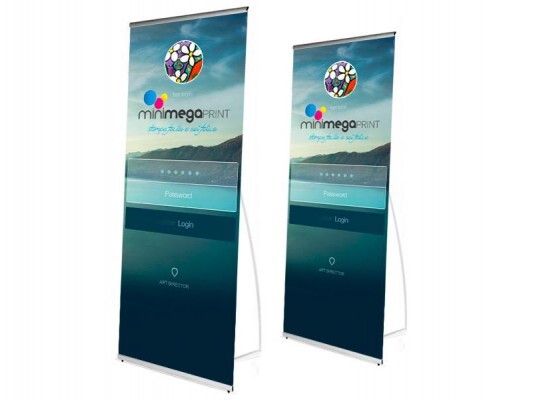 Espositore Pubblicitario a L , monofacciale in alluminio Silver, struttura composta da due barre orizzontali con chiusura a pinza, asta verticale e piede di sostegno. Tappi di chiusura laterali e piedini regolabili. Sacca rigida e grafica personalizzabile compresa nel prezzo.