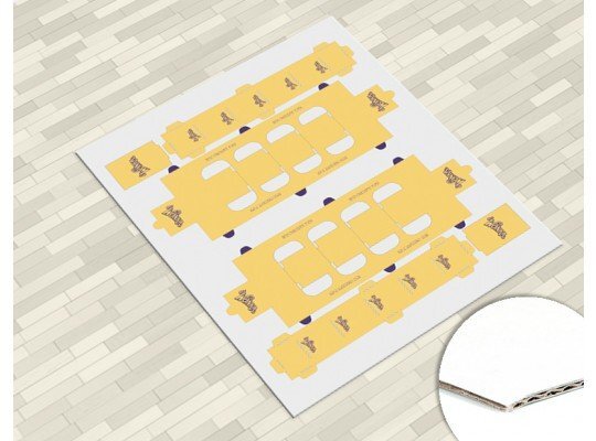 Stampa ad alta risoluzione con HP FB SCITEX 10000 su cartone Microonda: E PBWTB 643. Ideale per cartellonistica, espositori e packaging, per uso interno.